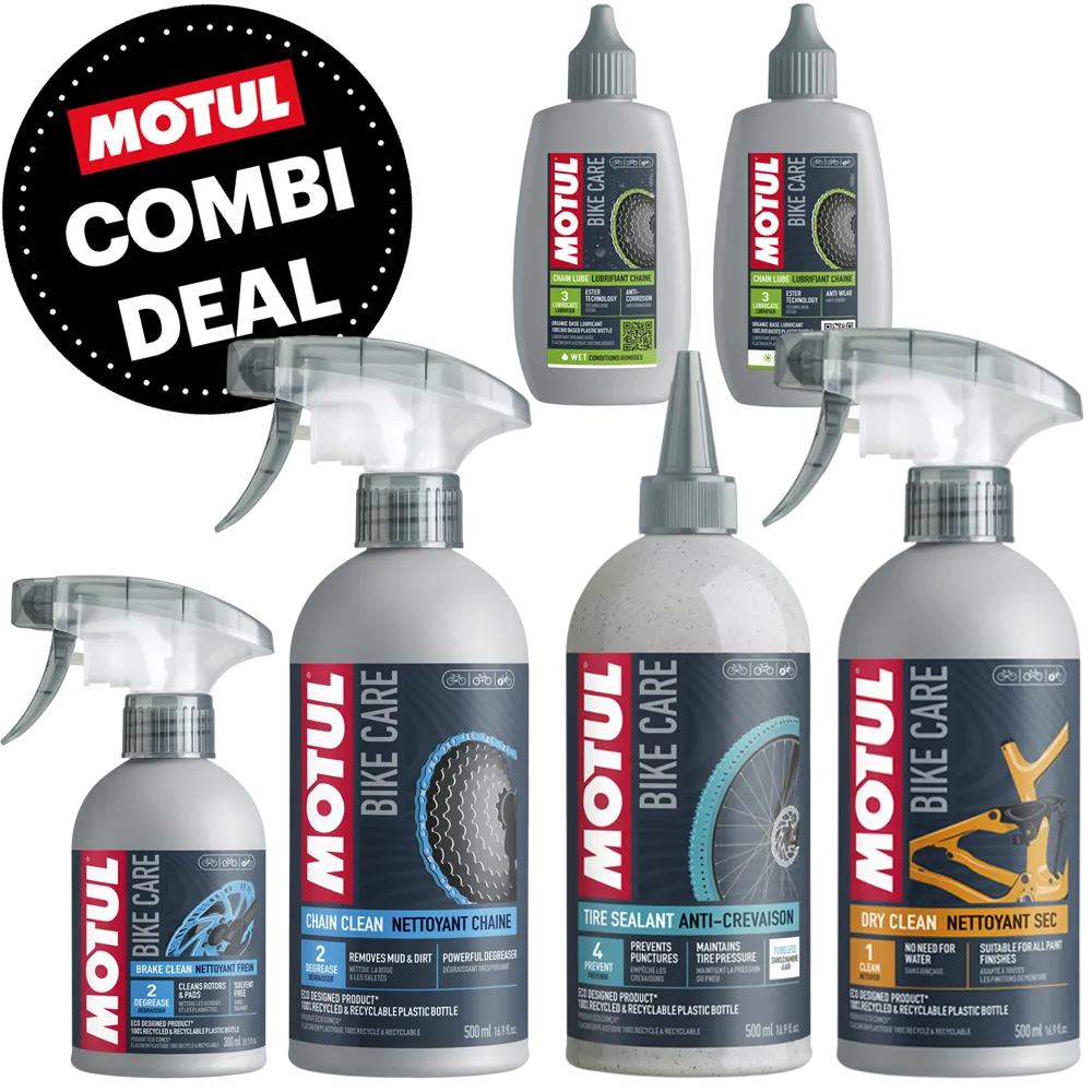 MOTUL Dry Clean reinigt Fahrradrahmen und -felgen mit glänzenden und matten Oberflächen mühelos und gründlich. Es eignet sich für pulverbeschichtete Oberflächen und eine Vielzahl von Anwendungen, darunter auch empfindliche Materialien wie Carbonfaser, Lack, Chrom, Farbe und Kunststoff. Hinterlässt einen wasserabweisenden Schutz und ist vollständig biologisch abbaubar.