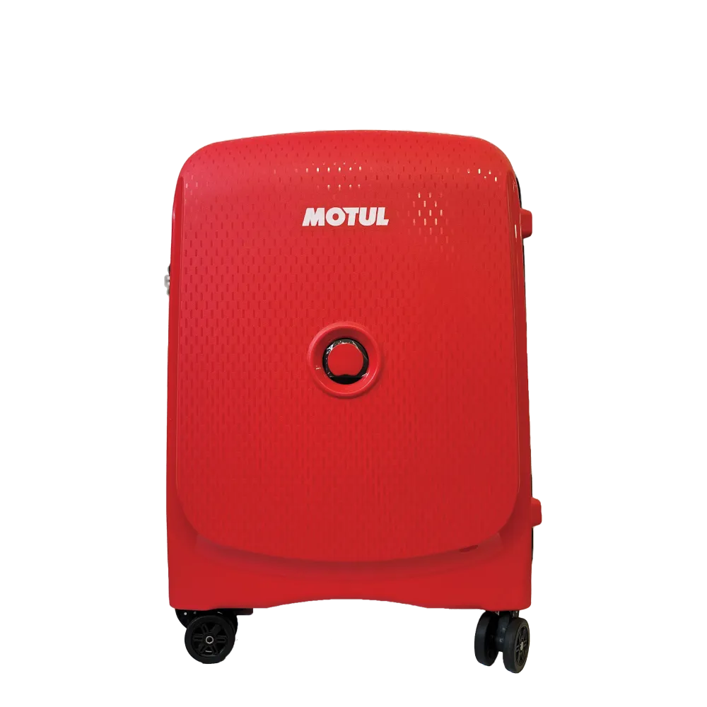 Der Koffer vereint ein sportliches Design mit erstklassigem Reisekomfort. Die harte Schale in auffälligem Rot mit weißem MOTUL-Logo bietet ausgezeichneten Schutz vor Stößen und Kratzern, während die kompakte Größe perfekt als Handgepäck geeignet ist.