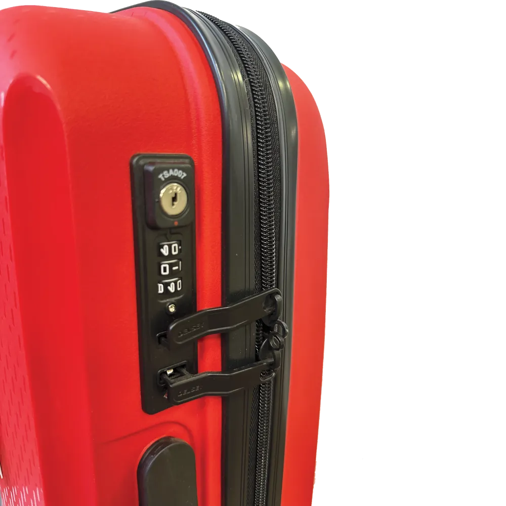 Der Koffer verfügt über vier 360°-Drehrollen, einen ausziehbaren Teleskopgriff und ein sicher integriertes TSA-Schloss.