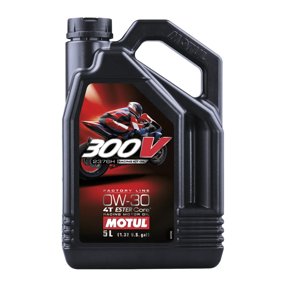MOTUL 300V Factory Line Racing Kit Oil 2376H 0W-30 ist ein Hochleistungsleichtlaufmotorenöl auf Basis ESTER Core® Technologie exklusiv entwickelt für die HONDA CBR 1000 RR-R in Verbindung mit dem HRC KIT, welche für den Betrieb mit einer niedrigen Viskosität ausgelegt sind.