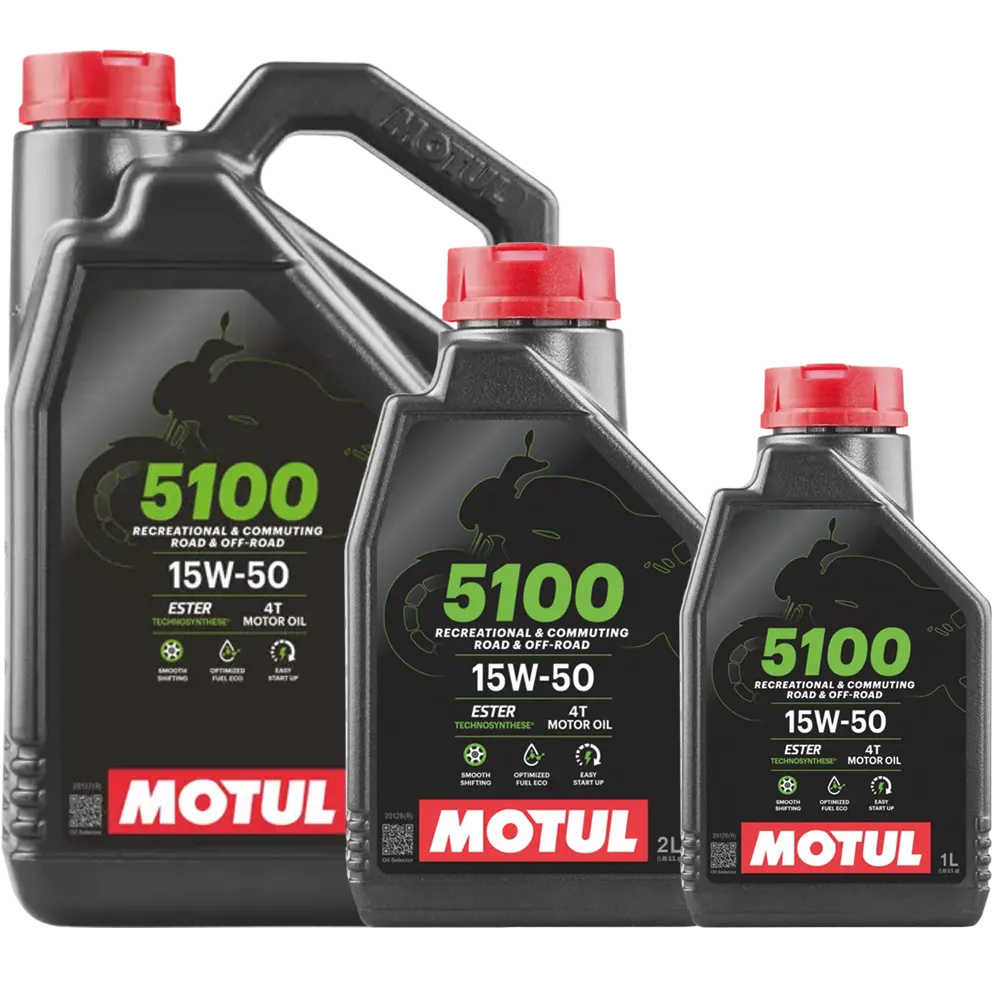 MOTUL 5100 ist ein 4T-Motorradmotorenöl, für den alltäglichen Gebrauch und Freizeitaktivitäten optimal geeignet.