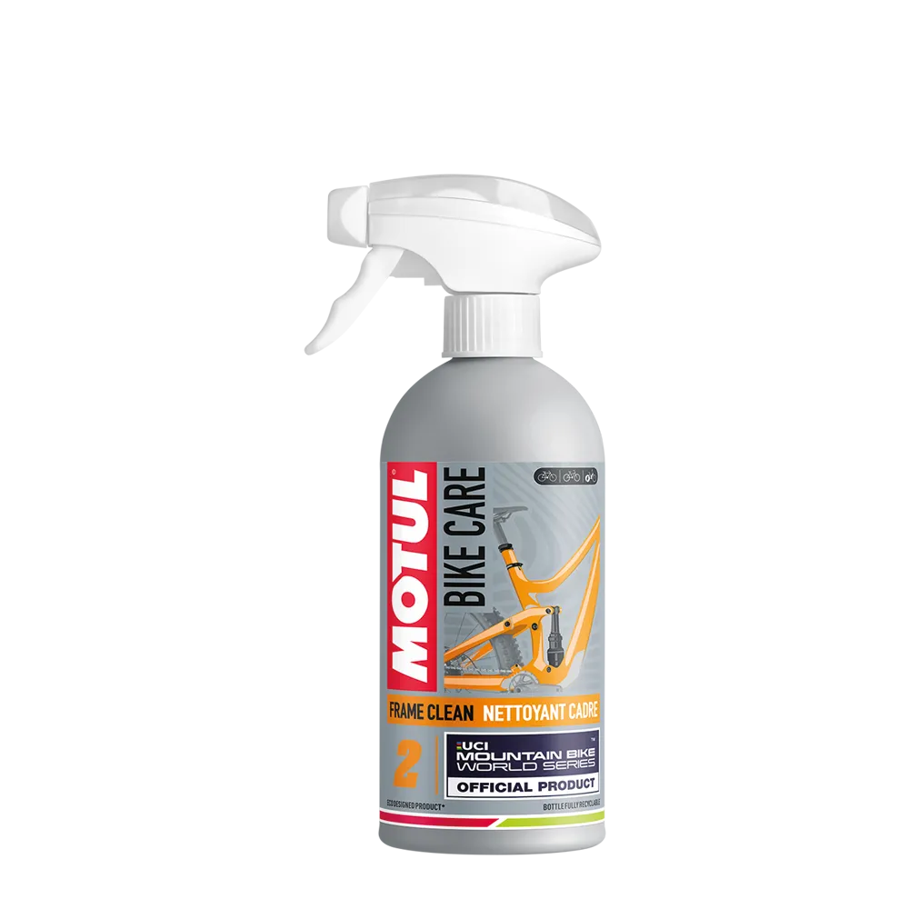 Reinigen Sie Ihr MTB gründlich mit MOTUL Frame Clean, dem wasserbasierten Reiniger, der selbst den hartnäckigsten Schmutz auflöst und entfernt.