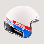Der Helm zeigt stolz das ikonische Motul-Logo auf einem dekorativen Streifen sowie die Helstons-Signatur, wodurch Motorradhistorie mit zeitgenössischem Design verschmilzt.
