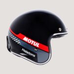 Dieser schlanke und stromlinienförmige Helstons X Motul Jethelm verkörpert das Erbe des klassischen Rennsports mit seiner Vintage-Silhouette und den charakteristischen Retrolinien.