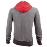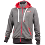 Der moderne und originelle Stil ergibt sich aus dem großen, zentralen Reißverschluss, den zwei Kordeln an der Kapuze und den Bündchen an Ärmeln und Taille.